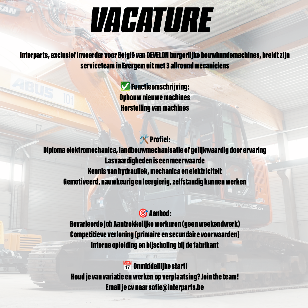 Sluit je aan bij ons dynamisch team: Interparts werft 3 allround mecaniciens aan om het serviceteam in Evergem te versterken!